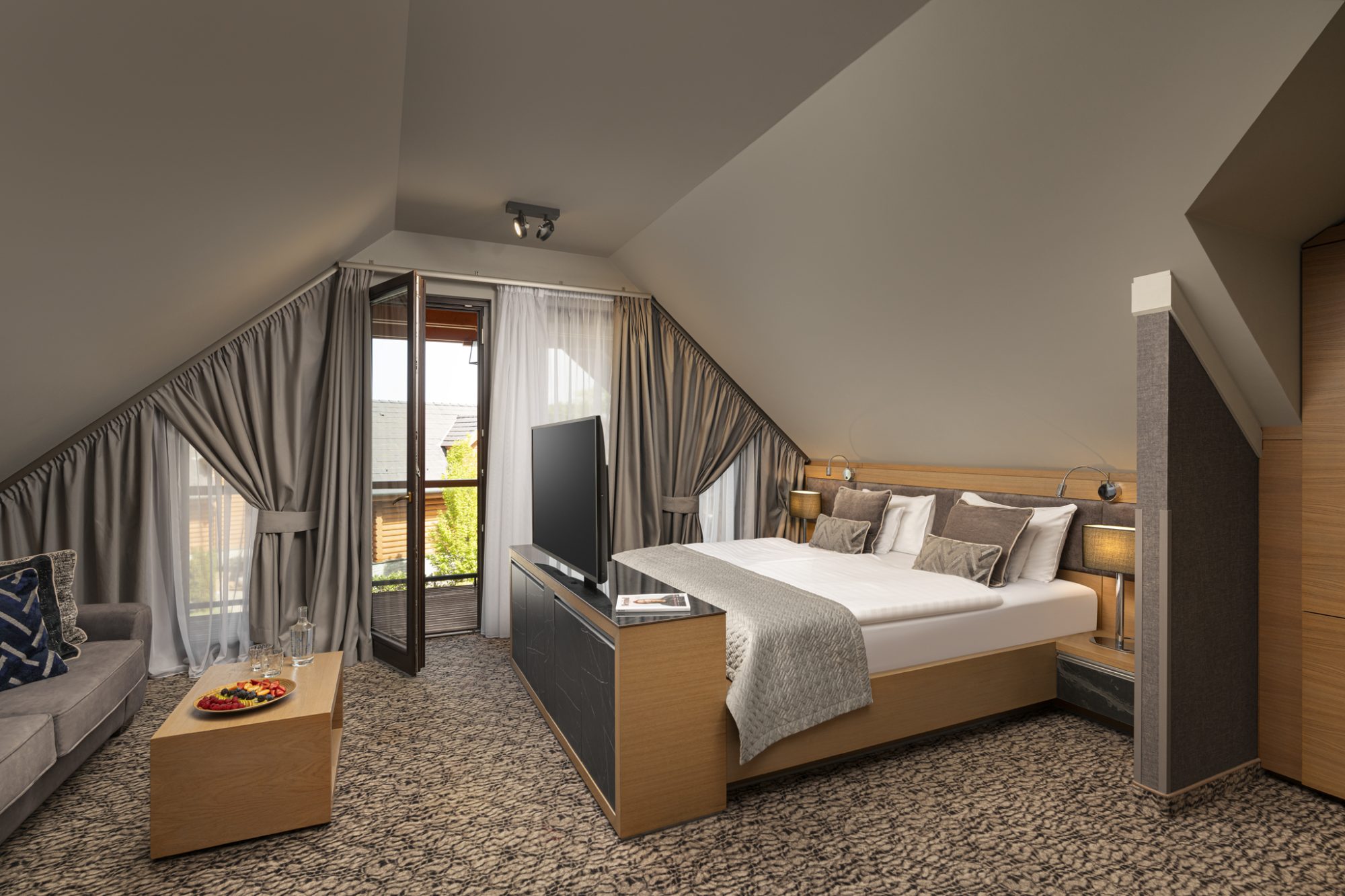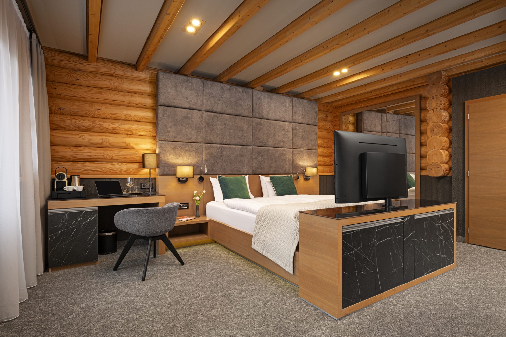 Maximális kényelem és pihenés: az exkluzív bútorok, illetve a prémium minőségű és teljesen egyedi gyártású matracok biztosítják a nyugodt, pihentető alvást.