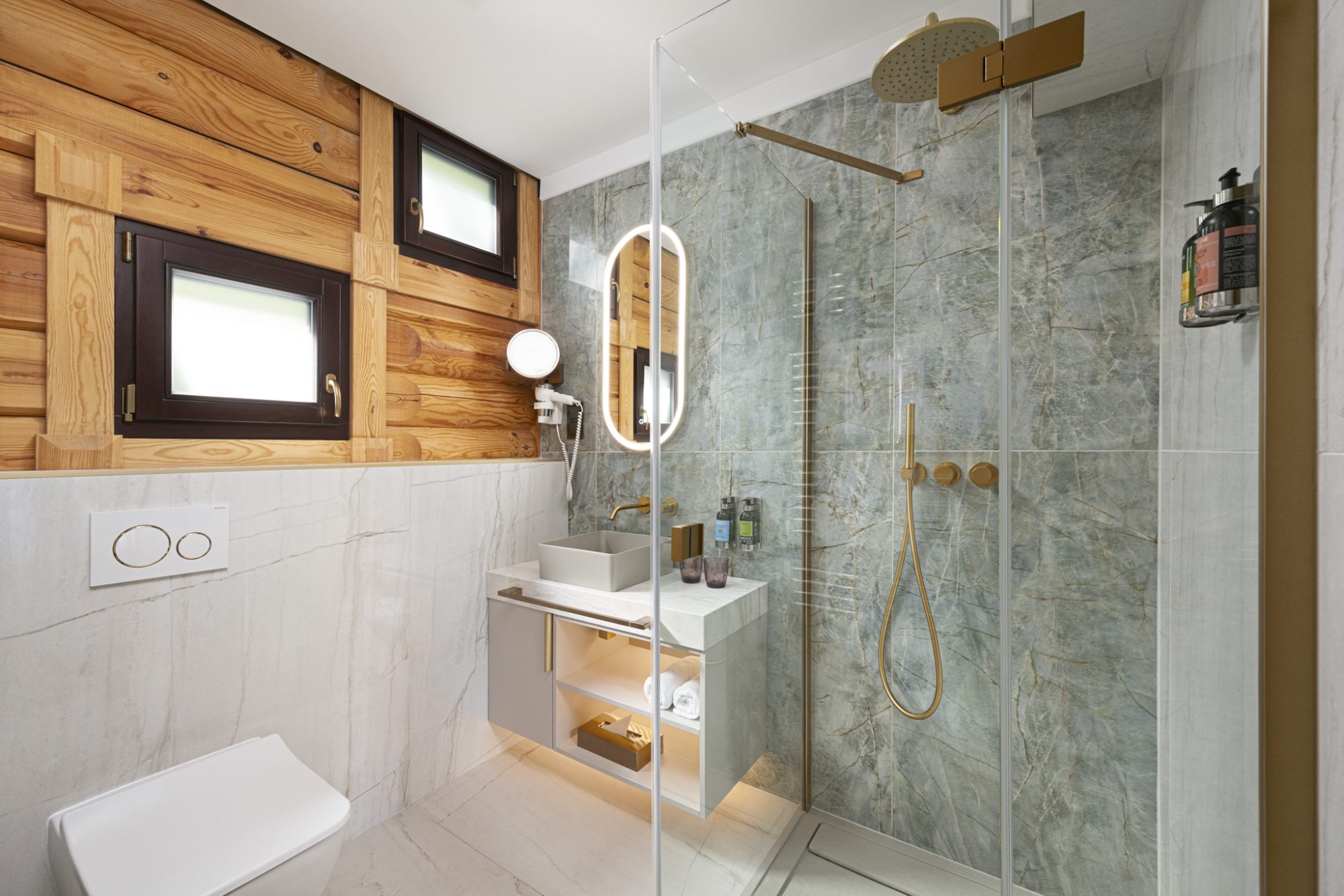 Modern, jól felszerelt házak: a külön bejáratú lakrészekhez saját fürdőszoba, klíma, LED TV, Nespresso kávé- és teafőző, telefon, minibár, WiFi hozzáférés, laptopszéf és mágneskártyás zár tartozik.