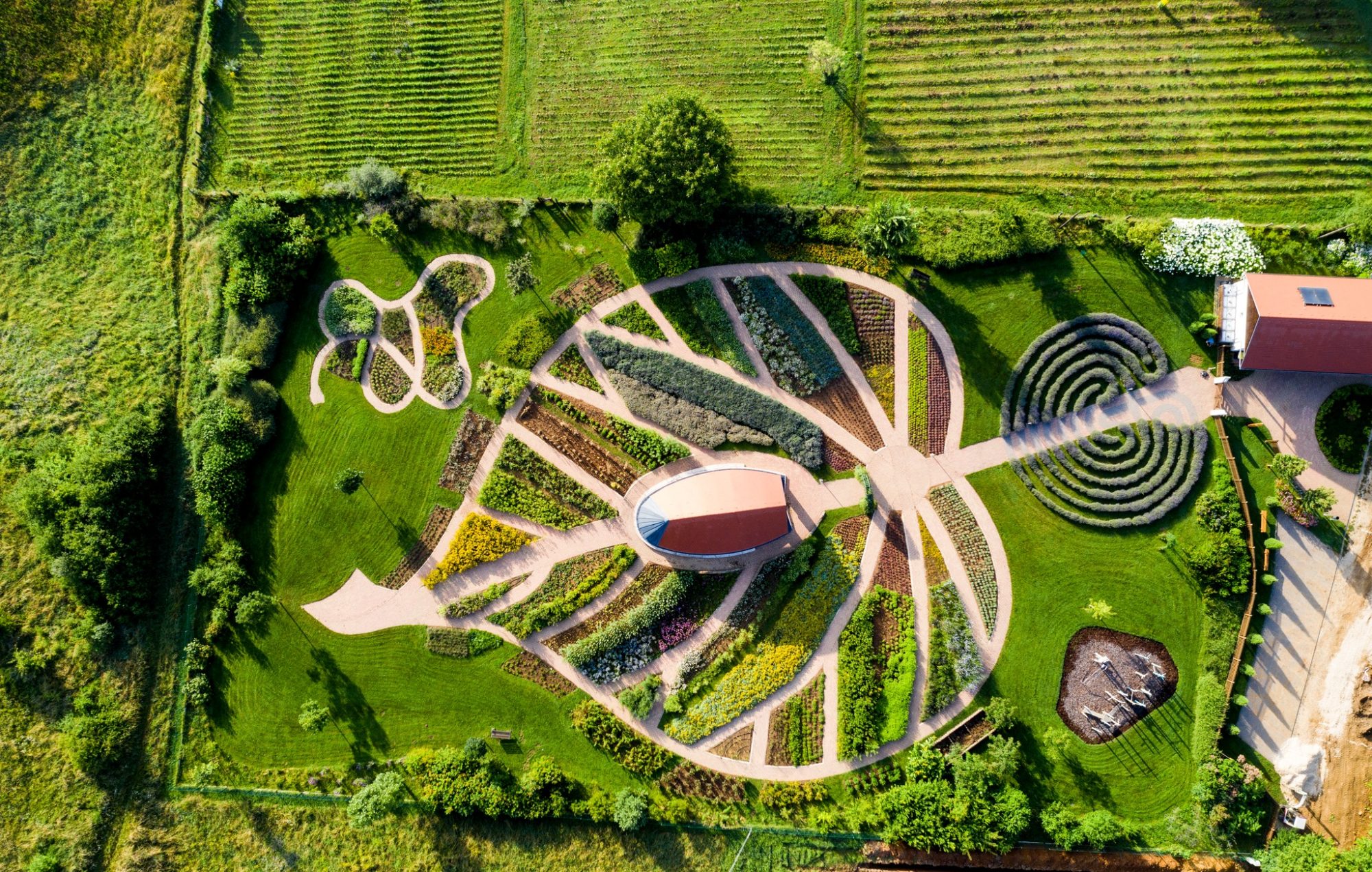 Plimbați-vă prin grădina mărginită de garduri vii și copaci, care oferă un adevărat refugiu și momente nostalgice. Admirați straturile în formă de frunză de tei, aproape 150 de tipuri de plante folosite în medicina populară, o colecție unică de peste 21.000 de exemplare – și vizitați și magazinul Györgytea.