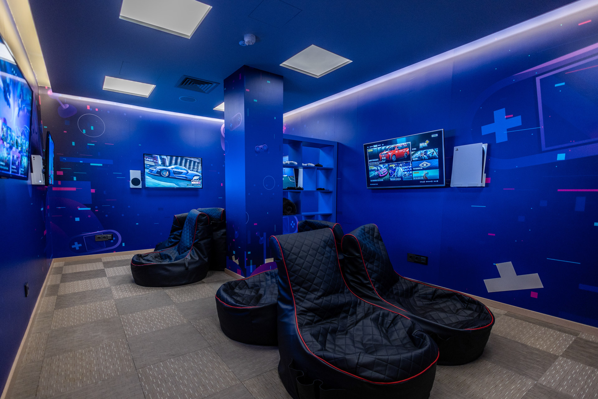 Do vzrušujúceho a pohlcujúceho sveta videohier môžete vstúpiť v našej konzolovej miestnosti, kde si môžete zmerať svoje schopnosti s priateľmi alebo rodinou a zažiť nezabudnuteľný herný zážitok na konzolách Xbox Series S, PS5 a Nintendo.